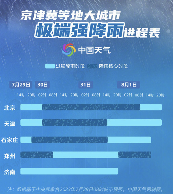 此外,7月29日9时至30日8时,京津冀地区最大降雨出现在邢台市临城县梁家庄,为504.2毫米,最大小时雨强出现在廊坊市霸州东段,30日2时至3时降雨72.5毫米。