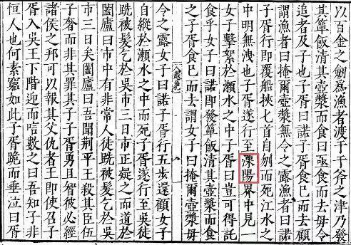 《吴越春秋》为东汉赵晔撰,是一部记述春秋战国时期吴、越两国史事为主的史学著作。书中也有类似的记载:“子胥默然,遂行至吴。疾于中道,乞食溧阳。适会女子击绵于濑水之上,筥中有饭……”