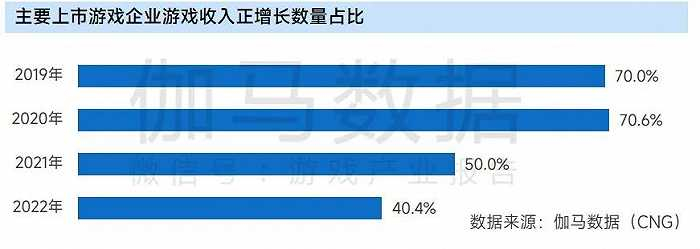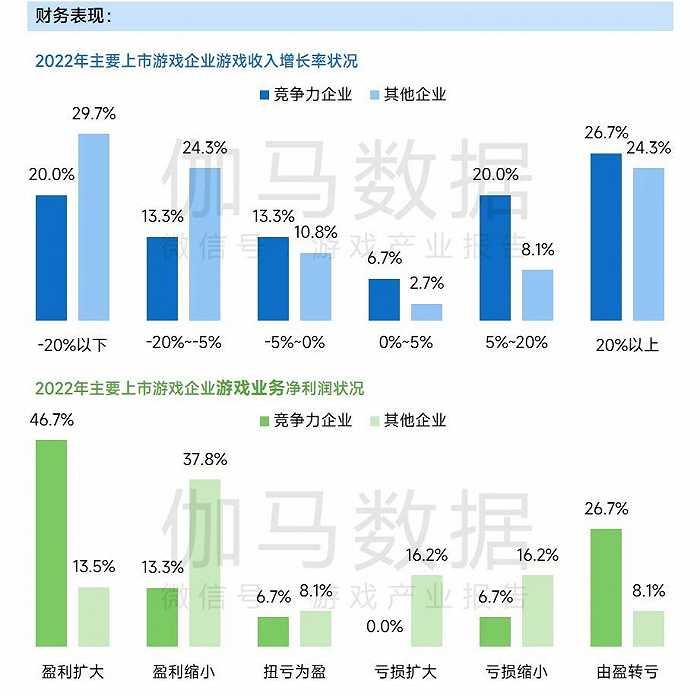 企业分化加剧,2022年仅4成企业游戏收入增长,但其中过半增速超20%