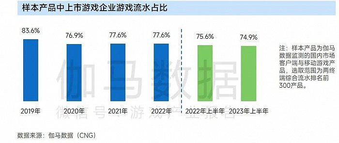 上半年上市游戏企业贡献样本产品游戏收入的74.9%,同比下降0.7个百分点