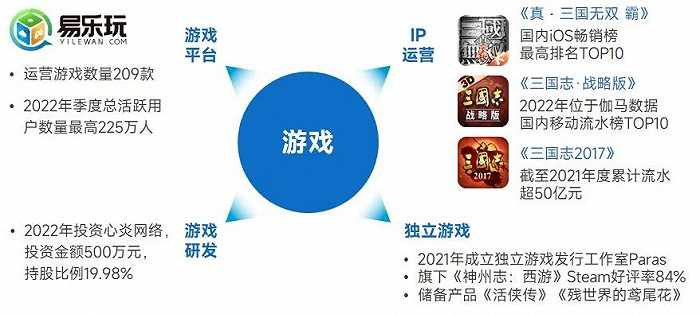 游戏产品是盛天网络的核心竞争力之一,同时,围绕上下游产业链的布局也在不断完善:游戏细分业务上,在已拥有IP运营、游戏平台的基础上,近年新增游戏研发、独立游戏的布局方向;细分业务内部各业务的布局程度也在深化,例如IP运营业务,主力产品《三国志·战略版》保持业绩贡献能力,后续游戏《大航海时代:海上霸主》、“真 三国无双 8”IP产品陆续上线,产品及储备IP层面,盛天网络的IP运营业务均已形成近几年的布局规划。不论是游戏版图的完善还是单款业务能力的深化,都将成为企业未来竞争力的来源。