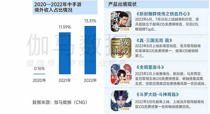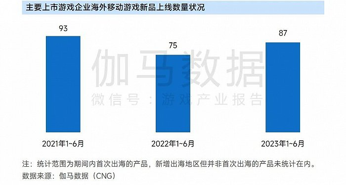从新品角度来看, 2023年上半年主要上市游戏企业海外新品数量达87款,较2022年同期增加12款,并有较多已出海产品拓展出海地区,出海新品中存在多个国内口碑较佳的产品。