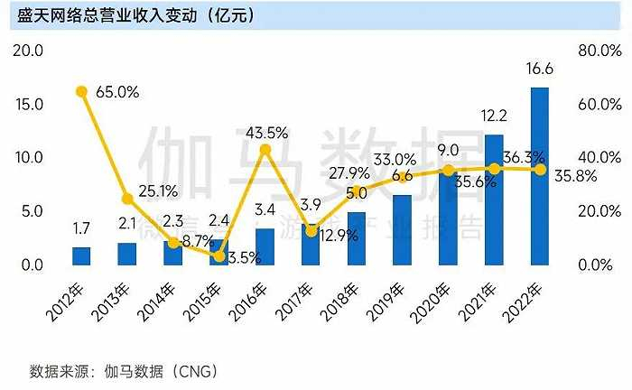 盛天网络是游戏产业内部少有的连续10年保持增长的企业,在产业规模收缩的情况下,2022年盛天网络总营业收入同比增长35.8%,达到16.6亿元。伽马数据认为,盛天网络的竞争力,即保持增长的核心因素主要来自两方面,一方面,以游戏场景为核心,企业不断拓展细分业务及能力,例如加速器、个人云盘等游戏服务工具以及游戏社交产品;另一方面,企业注重细分业务与自身能力的相互串联,相互串联的直接利好在于资源共享、引流用户等方面,深层利好则在于企业能够编织密集的业务网络,既增加单项业务的抗风险能力,又能依托集合优势提升市场竞争力。得益于此,当盛天网络的某项业务出现下滑时,通常会有其他积淀较深的业务释放潜力、带动企业整体增长,现阶段,盛天网络仍在不断拓展细分业务,例如电竞酒店、移动游戏与独立游戏发行等。在AI布局上,盛天网络正应用相关AI声音生成算法和技术于社交产品,并关注生成式AI在游戏、广告、虚拟人、电商领域的应用情况。