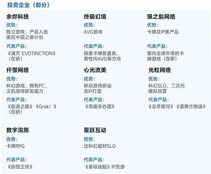 游族网络在卡牌赛道具有丰富的技术积累和发行经验,随着全球范围内卡牌品类愈发成熟,游族网络通过延续“全球化卡牌+”的战略方针寻找新的增量。“全球化”意味着全球化发行,在游戏立项阶段就以全球化视角选择题材、风格和玩法。2022年10月,游族网络“全球化卡牌+”战略推行以来首款自研自发的产品《绯色回响》(《绯红神约》)在日本和东南亚地区上线,一度高居日本、泰国、新加坡等多个国家和地区iOS畅销榜TOP10,其中最好成绩为单地区iOS畅销榜TOP2,全球化布局得到市场的良好反馈。“卡牌+”指的是在原有深耕卡牌赛道的基础上,通过题材创新、玩法融合的方式打造产品的差异化属性。少年系列新品卡牌+RPG的《少年西游记2》、卡牌+SLG的《代号:G》、回合制卡牌《山海镜花(重启)》等将于2023年上线,储备项目中还有卡牌+ACT产品《代号:U》及多款轻度卡牌小游戏,通过尝试不同种类的卡牌融合玩法,或将激活卡牌品类新的潜力。