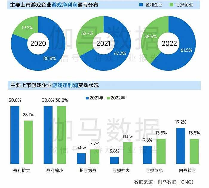 2022年38.5%主要上市游戏企业的游戏业务亏损,较2020年几乎翻倍