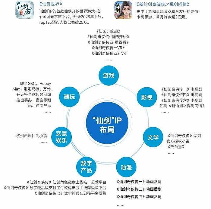 中手游始终保持着对旗下重点IP“仙剑奇侠传”的深度布局,持续培育IP生命力,增强IP丰富度和互动体验。“仙剑奇侠传”系列自1995年诞生起,已创造了庞大的世界观和IP内容,为中手游后续IP开发奠定了坚实的基础。目前“仙剑奇侠传”IP已覆盖游戏、影视、动漫、文学、潮玩等多种领域。“仙剑”IP的首款开放世界元宇宙游戏《仙剑世界》已于2023年6月开启首次测试并预计年内上线,该游戏将IP背景与历史传统、神话传说、风土人情和非遗技艺等相结合,打造集游戏、娱乐、社交、消费、文化传播于一身的元宇宙世界。在实景娱乐领域,杭州西溪仙剑小镇也计划于2023年对外试营业。线上与线下多维度布局,将全方位触达对“仙剑”IP或国风题材有兴趣的消费者,进一步提升IP影响力。基于持续打造“仙剑”IP的战略布局,“仙剑”IP或将进入内容和流量大年,中手游也有望以此实现业绩突破。