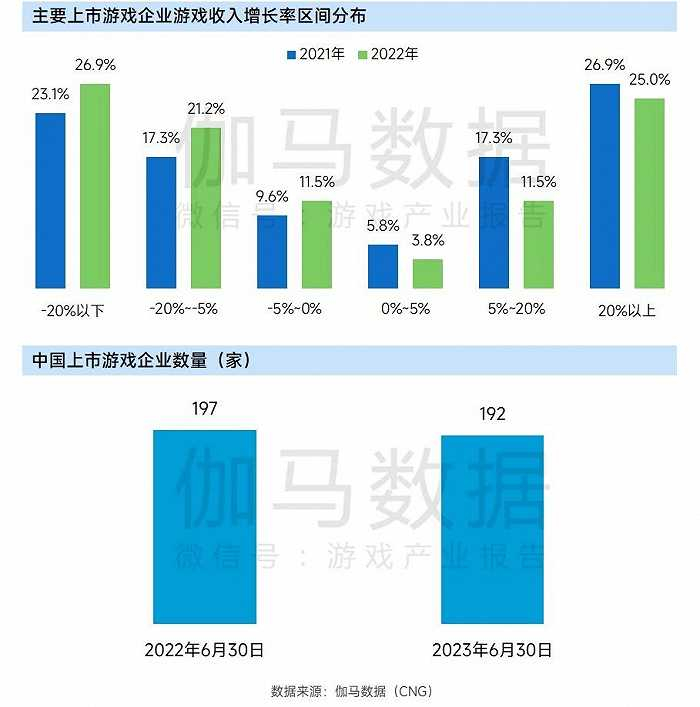 收入方面,企业分化进一步加剧,虽然仅4成企业收入增加,但多数增速超20%。与此同时,上市游戏企业的数量延续下降趋势, 截至6月30日上市游戏企业存量为192家,较2022年同期减少5家。