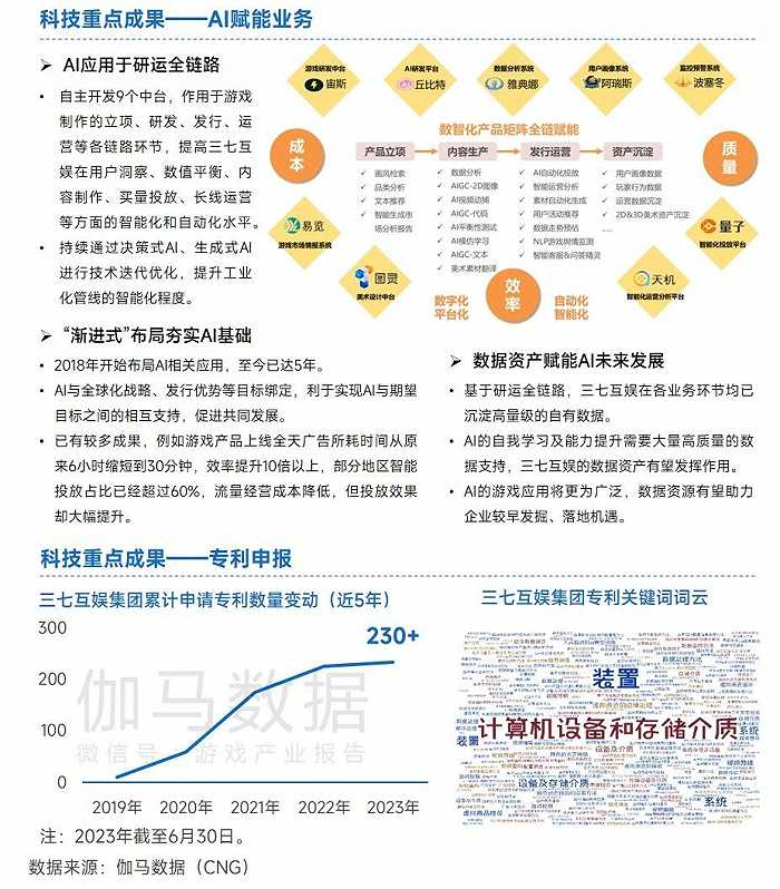 现阶段,三七互娱的技术能力已通过AI赋能研运全链路、专利申报等领域有所体现,而在日益强调数字经济的科技环境下,企业技术能力有望在更多领域释放价值。