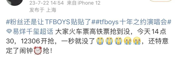 在“五月天演唱会抢票”、“周杰伦演唱会”等热度还未消散之时,又一大顶流天团TFBOYS的“十年之约”演唱会在互联网上掀起了“腥风血雨”。