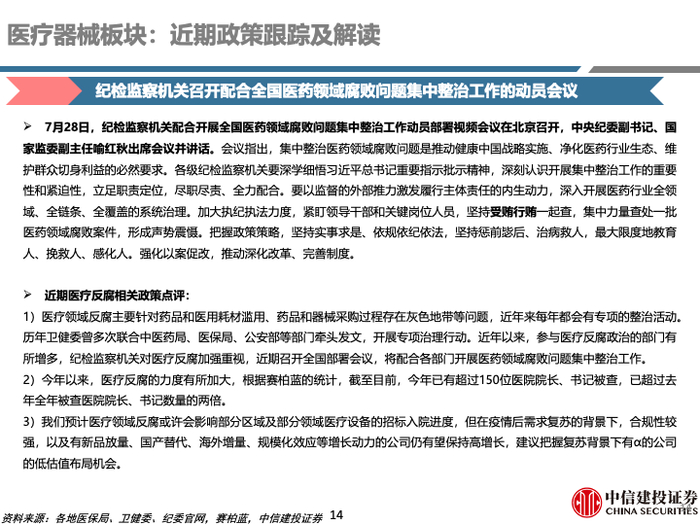 医疗器械:建议关注新品持续放量、业绩确定性较高的公司。