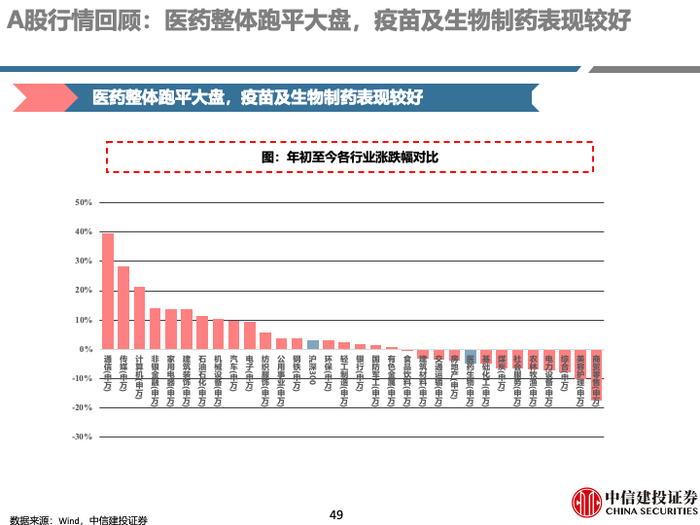 生物制品:疫苗重磅品种放量叠加低基数,血制品供需两端复苏,推动相关企业业绩增长。