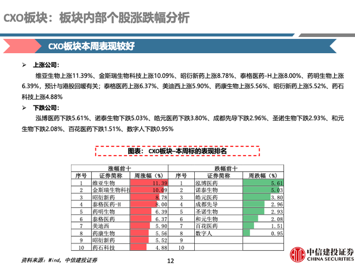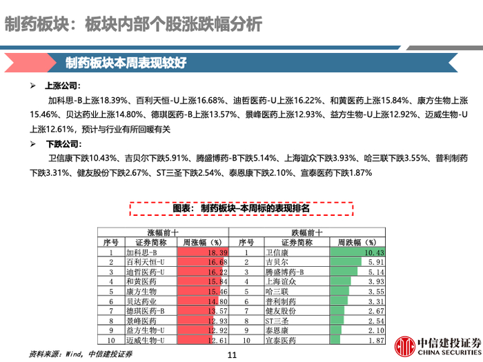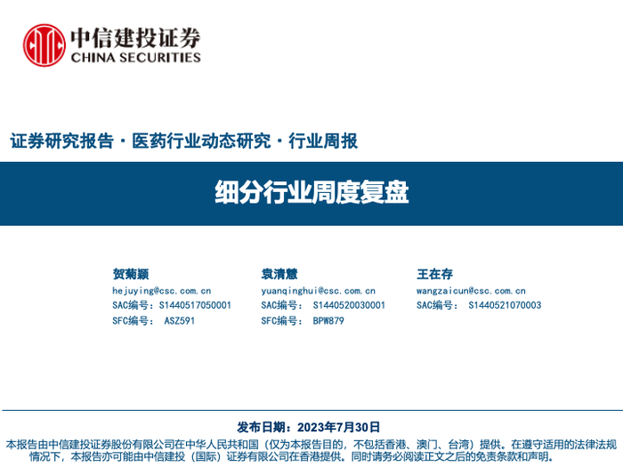 中信建投 | 医药:细分行业周度复盘
