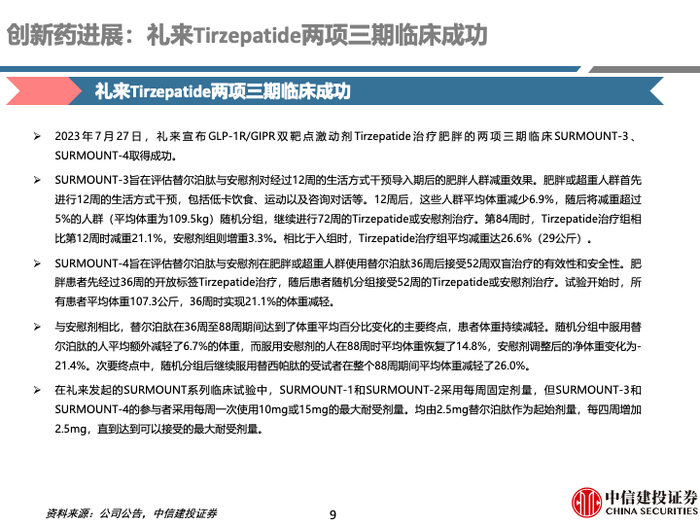 制药:CDE发布三份药物临床试验相关指导原则,进一步强调患者体验数据的重要性;罗氏引进Alnylam的高血压siRNA疗法;礼来Tirzepatide两项三期临床成功;Enhertu泛癌种临床试验获得积极结果。