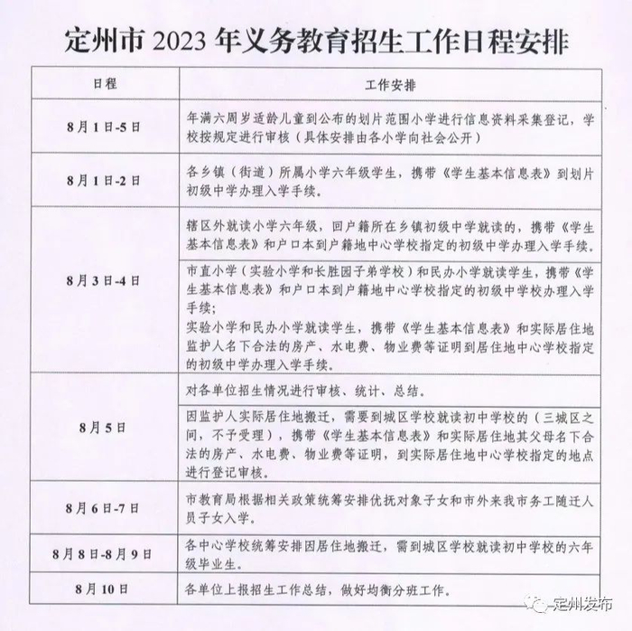 重磅!2023年定州市义务教育招生入学工作的通知来了