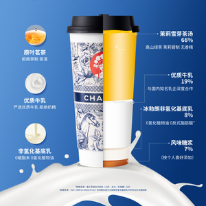 值得一提的是,基底乳的全面革新,仍然保持了原叶鲜奶茶“清爽不腻茶更香”的经典口味特色。原叶鲜奶茶系列产品的主要原料仍然是原叶茶汤和优质牛乳,每杯原叶鲜奶茶系列产品里约加入20ml-40ml左右的冰勃朗,使茶香与乳香达成更充分的交织融合,最终实现了原叶鲜奶茶系列产品“0奶精、0植脂末、0氢化植物油”的健康化升级。