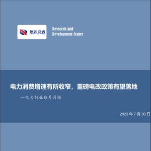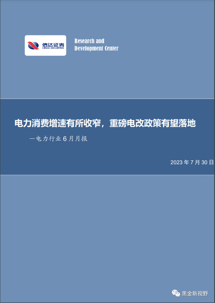 6月电力月报:电力消费增速有所收窄,重磅电改政策有望落地
