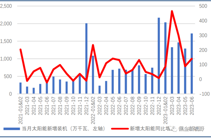 ⚫分电源看,6月全国总新增装机3042万千瓦,其中新增火电装机400万千瓦,新增水电装机102万千瓦,新增核电装机0万千瓦,新增风电装机663万千瓦,新增光伏装机1721万千瓦。光伏装机延续良好装机并网态势,6月装机量同比增速达140.03%。风电装机容量增速显著提升,为212.74%。