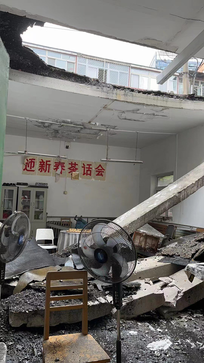 暴雨中坍塌的房顶让人惴惴不安,快给渗漏的老楼做个安全鉴定