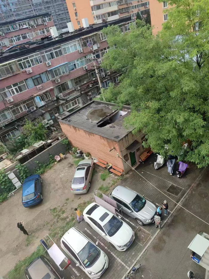 在7月22日的一场雷阵雨中,朝阳区曙光里19号楼前的老年活动站的房顶塌了,万幸没伤着人。一周以来,居民望着窗外未来得及处理的事故现场,联想到自家房子漏雨或阳台开裂,感到惴惴不安。有居民说,老年活动站和居民楼是同时期建设的。由于涉及央属产权单位,在近几年老旧小区改造中“掉队”了。眼瞅着周围其他居民楼都重新铺设了防水层、保温层,有了各类修缮的措施,居民们希望老年活动站的问题能引起产权单位的重视,尽快给老楼做一次安全鉴定,为居民排除房屋安全隐患,解决漏雨难题。