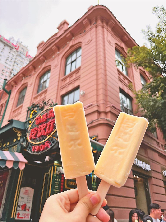 哈尔滨的清凉,不仅在江畔的晚风中,在雨后的空气里,也在游客手中的马迭尔冰棍儿里。有人说,来到哈尔滨,不品尝马迭尔冰棍儿,就如同去北京没吃烤鸭,去天津没吃煎饼果子,去沈阳没吃过鸡架。更有人说,不来中央大街就相当于没去过哈尔滨,没吃过马迭尔冰棍就相当于没到过中央大街。