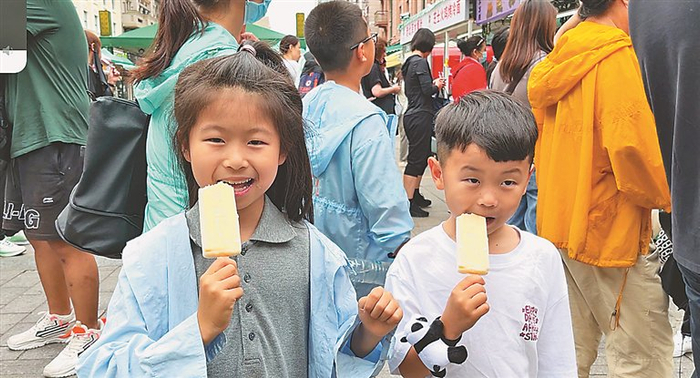 店门口,来自北京的王女士正在细细品尝马迭尔冰棍,“我们是专程来哈尔滨的,家里那边儿温度将近40摄氏度,这儿20多度,赶上暑假自驾过来,打算在哈尔滨待半个月。”王女士说。对于哈尔滨的各色美食和这几天凉爽舒适的温度,王女士赞不绝口:“冰棍很好吃,哈尔滨的美食也真的很多,气候还这么凉爽,推荐大家都来哈尔滨避暑。”