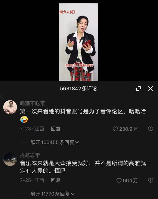 截至目前,在那英的抖音评论区下方已经有超过560万条评论,而其本人的粉丝也不过180万,此外,高晓松、杨坤等人的评论区私信也纷纷遭到网民的围追堵截。