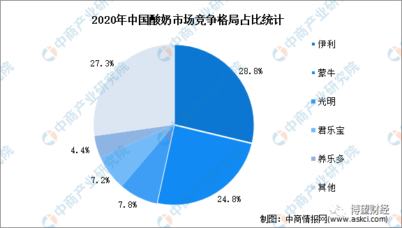 华经产业研究院披露的数据显示,2020年,君乐宝酸奶市占率只有7.2%,不光远低于蒙牛、伊利,甚至已被光明反超。