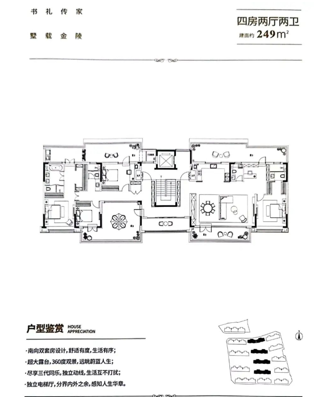 其中,249㎡户型,填补了区域200㎡以上改善大户型的空白,值得一提的是,据悉,该户型仅分布在中间楼栋的顶层,全小区只只有8套,堪称小区“王炸户型”。