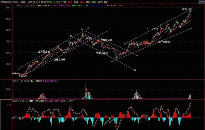 趋势线中的压力线和支撑线不是一成不变的,在价格突破了压力线以后,压力线就有可能演变成未来趋势的支撑线,在价格跌破了支撑线以后,支撑线就有可能演变成未来趋势的压力线。投资者在应用趋势线时应该注意压力线和支撑线之间的灵活应用。
