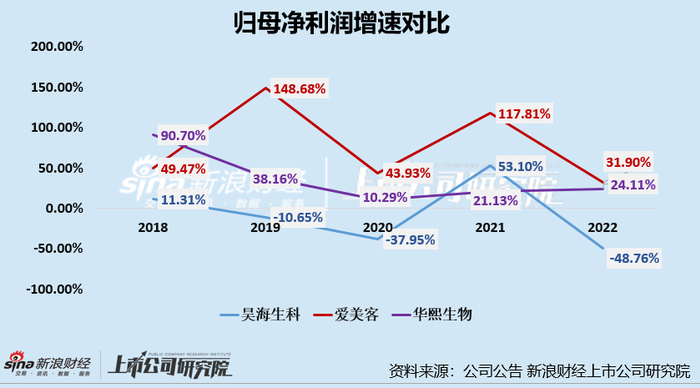 纵观昊海生科近年来业绩表现,唯有“波动”二字最恰当,无论是从业绩增速、还是盈利能力指标来看,公司或均已被爱美客、华熙生物“甩”在身后,已成为“医美三剑客”中业绩垫底的那一个。