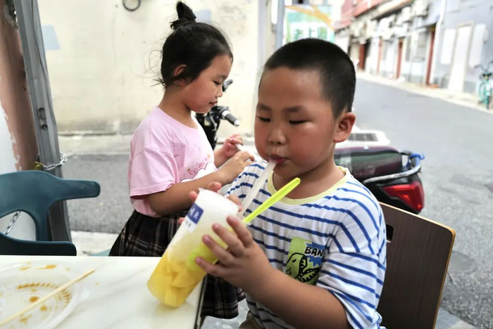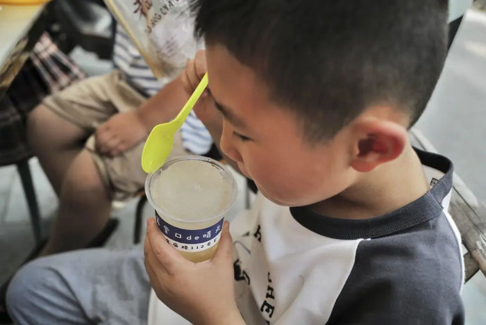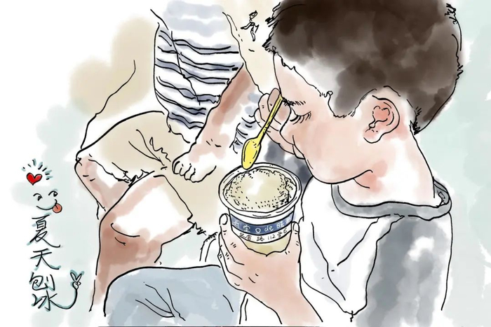 下午三点的阳光很毒辣,但小孩子们看到刨冰就足够快乐,目不转睛地盯着手中彩色的杯子。你吸一口,我挖一勺,全世界孩童们的快乐是相通的。