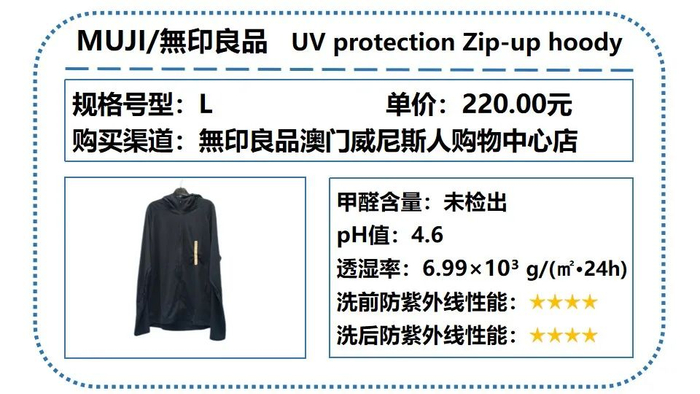备注:表中洗后防紫外线性能评星结果,仅代表该样品分别洗涤3次、6次和10次后的防紫外线性能综合评星结果,并不代表其它洗涤次数的防紫外线性能评星结果。