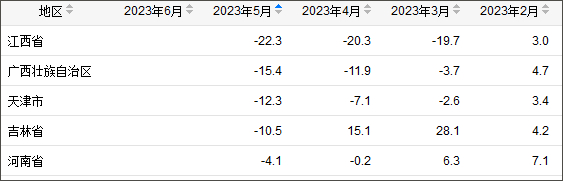 山西上半年固定资产投资下降4.7%,房地产开发投资增速从一季度2.4%下滑至0.5%;陕西、甘肃、青海、云南房地产开发投资分别降5.9%、8.0%、27.8%和33%。