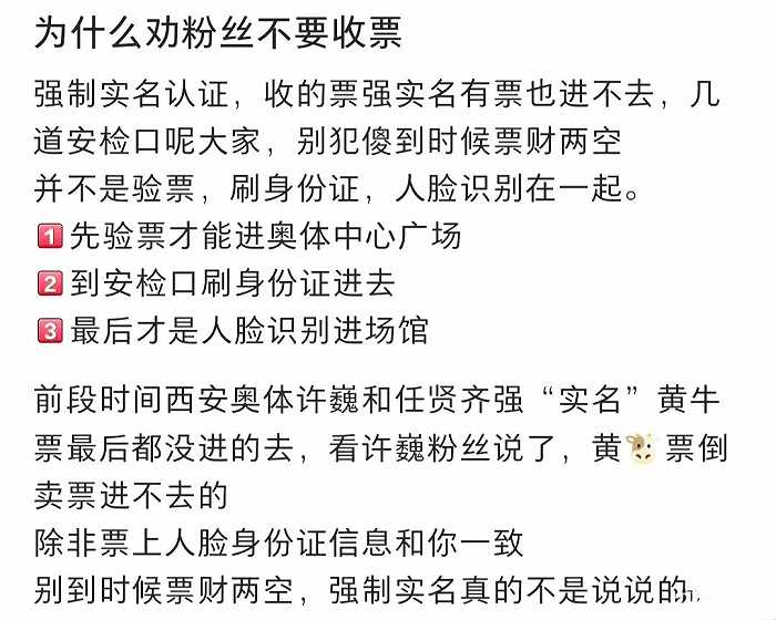 造成这种现象的直接原因,则是来自于消费受众观演需求的膨胀式暴增,尤其是头部艺人。同时,黄牛、路人牛、粉牛等倒卖门票的二级市场内不断涌现诈骗、跑路事件,粉丝收购二手票也面临非本人信息绑定门票的风险系数逐渐走高。