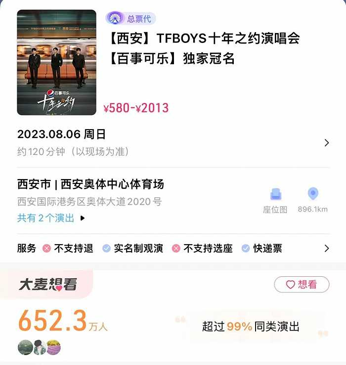 数据显示,截至当天下午17点,大麦网已有超过652万人标记“想看”。相较于7月24日首次开票时秒空的3万张门票、560万人标记“想看”的火热盛况,有过之无不及。