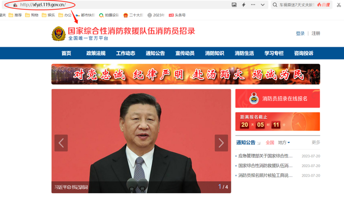 (一)网上注册报名。招录对象可在2023年7月20日23时后、8月10日18时前,使用电脑(手机浏览器无法报名)登录国家综合性消防救援队伍消防员招录平台(http://xfyzl.119.gov.cn),查询浏览招录信息、注册报名。