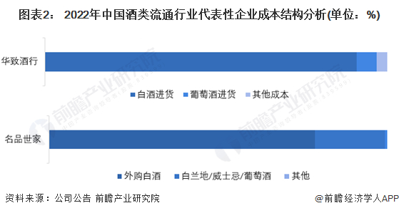 酒类流通行业的成本包括酒类进货/生产成本、物流成本、仓储成本、人工成本、其他成本,其中,酒类进货/生产成本是最主要的成本结构。从2022年代表性企业的成本结构来看,酒类进货/生产成本占总成本的95%以上。
