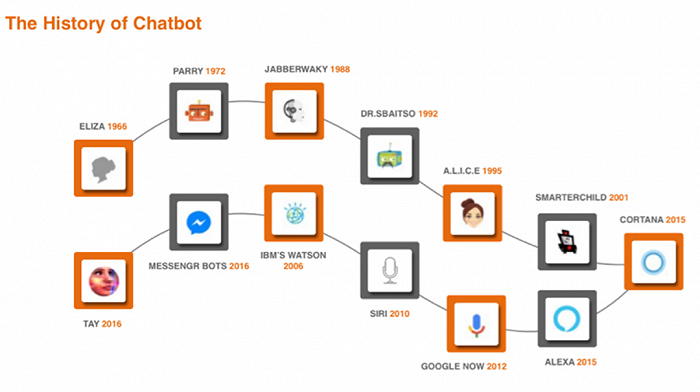 事实上,聊天机器人的发展历程已有近60年。至少,QQ微软小冰、SIRI,甚至是微信支付,大家多多少少都是调戏过的吧。