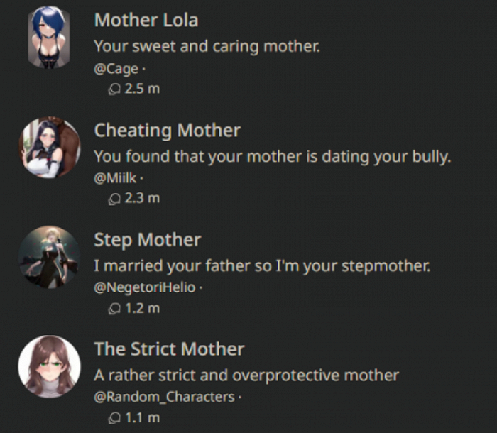 当然,一些用户也会利用AI满足一些自己的小癖好,虽然Character.ai会屏蔽一些,但还是有不少漏网之鱼。