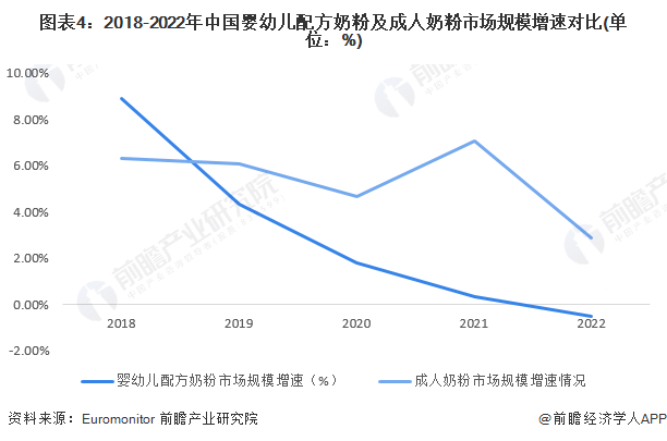这在一定程度上表明,随着中国人口出生率降低,中国婴幼儿配方奶粉市场有所萎缩,成人奶粉市场仍具有一定增量空间。