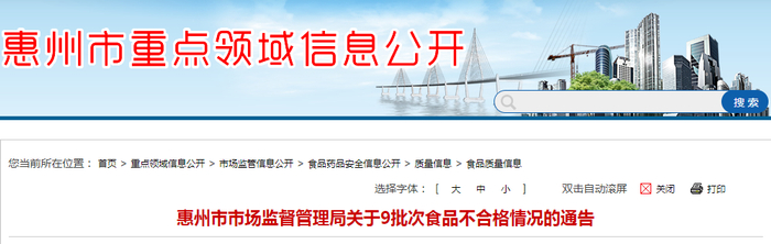广东省惠州市市场监管局关于9批次食品不合格情况的通告