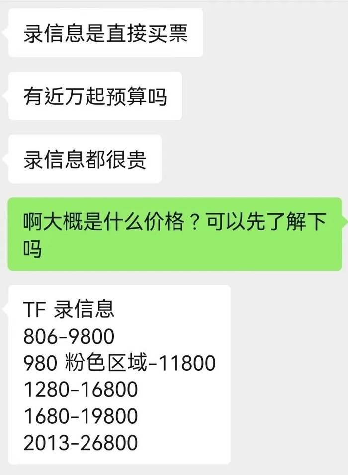 邀请函和录信息为内部票,数额少,价格贵。这两类票性质相似,前者为纸质票,后者为电子票,纸质票扫码后也需录入信息。