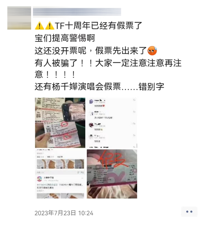 在他看来,热衷囤票、低价炒票的票务仍存在,但更多是“黄牛”。阿牛觉得,当下票务市场中,黄牛遍布,骗子更是大肆横行。骗子混迹在票务市场,因庞大的数量和极强的伪装性,成为粉丝触手可及的“卖方”。他们以票务或黄牛身份出现,实际上兜售的是假票。
