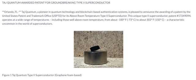 美国泰吉量子公司的首席执行官Paul Lilly 表示:“很高兴地宣布,我们终于获得了我们的室温 II 型超导体专利。 ”