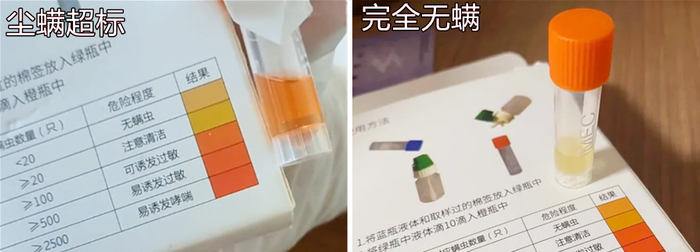 它对螨虫的效果也非常好,我们用试纸做了除螨测试。