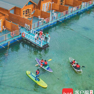 在陵水黎族自治县疍家渔排海上共享渔庄,游客体验桨板等游玩项目。海南日报记者 王程龙 摄