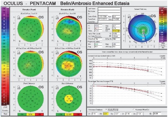 “近视散光越来越高”、“揉眼睛”这两个关键词,引起了医生的警惕。青春期、男性、揉眼,这些都是圆锥角膜的高危因素,而近视、散光进行性增加,正是圆锥角膜最常见的临床表现之一。