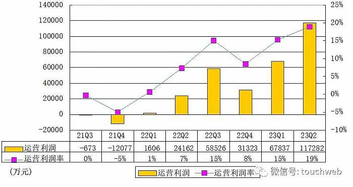 瑞幸咖啡2023年第二季度运营利润为11.728亿元,运营利润率为18.9%。而2022年同期运营利润为2.416亿元,运营利润率为7.3%。