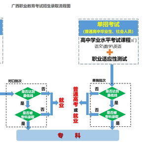记者留意到,拟实施的广西高等职业教育考试包括对口招收中等职业学校毕业生统一考试(简称对口考试)、单独招收普通高中毕业生及社会人员统一考试(简称单招考试)两种类型。实施高等职业教育考试后,一大变化就是对口考试和单招考试从现行的各院校组织命题和测试,调整为由自治区招生考试院统一组织,全区统一命题、考试。