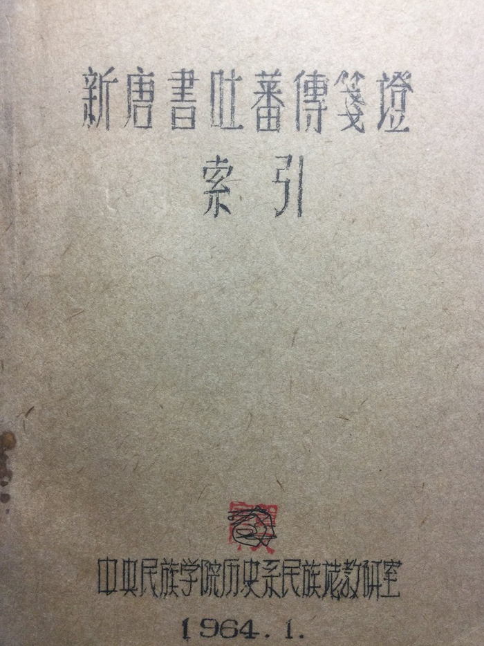 目录中的“纪年补编”全部来自陶书。“附录之二 敦煌古藏文史料摘译”全部来自王书,这也就是《初步意见》为何特别强调“并辑入王忠部分译文编印”的理由。剩余的主体部分都是巴书。顺便提一下与王忠有关的事。我从孔网买到过一册中央民族学院历史系民族志教研室(王启龙、阴海燕著《中国藏学史[1950-2005]》[中国社会科学出版社,2013年10月第1版]39页将“民族志教研室”误写成“民族教研室”)于1964年1月刻字油印的《新唐书吐蕃传笺证索引》(图六十;封面和书中所钤“贺文宣印”被划掉。贺生于1933年,是1960级藏研班的毕业生,任职于西北民院),也属于和十七年时期藏语古代历史文献研究有关之物,其中的《前言》详细讲述了该书编印的缘起和经过: